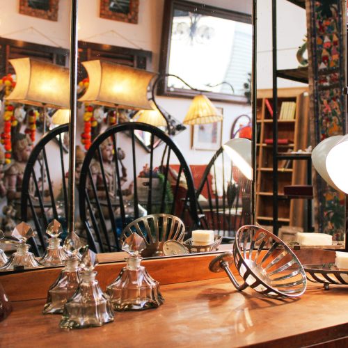 Pour Laurence, la brocante c’est comme un spectacle, sa boutique devient le décor, et elle, incarne un personnage haut en couleur. Elle aime partager les histoires d’objets, qu’elle connaît sur le bout des doigts.